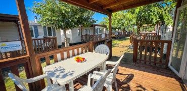 All'interno del California Camping Village è presente la graziosa Casa Mobile Happy Comfort dotata di una camera matrimoniale e di una seconda camera con due letti singoli. In soggiorno è disponibile un ulteriore posto letto rappresentato dalla seduta con cuscini intorno al tavolo. La cucina è dotata di un piccolo frigorifero con un vano congelatore e un piano cottura a quattro fuochi, offrendo tutto il necessario per preparare i pasti in modo indipendente e in totale comodità. Il bagno è completo di wc, doccia e lavandino. In alcune unità, il wc è separato dalla zona doccia per offrire maggiore praticità e comfort. Le zanzariere sono presenti nelle camere da letto. All’esterno, gli ospiti potranno rilassarsi all’ombra di una terrazza parzialmente coperta attrezzata con tavolo, sedie e due sdraio o sedie reclinabili. Ove il campeggio lo permette, è disponibile una piastra elettrica per grigliate all'aperto. Le Pulizie finali devono essere effettuate dal cliente, altrimenti verranno trattenuti dalla cauzione € 40,00 per Happy Comfort. Per prenotazioni con gruppi di ragazzi (tra i 18 e i 25 anni) si prega di segnalarlo nella sezione "hai esigenze particolari" in fase di conferma online.