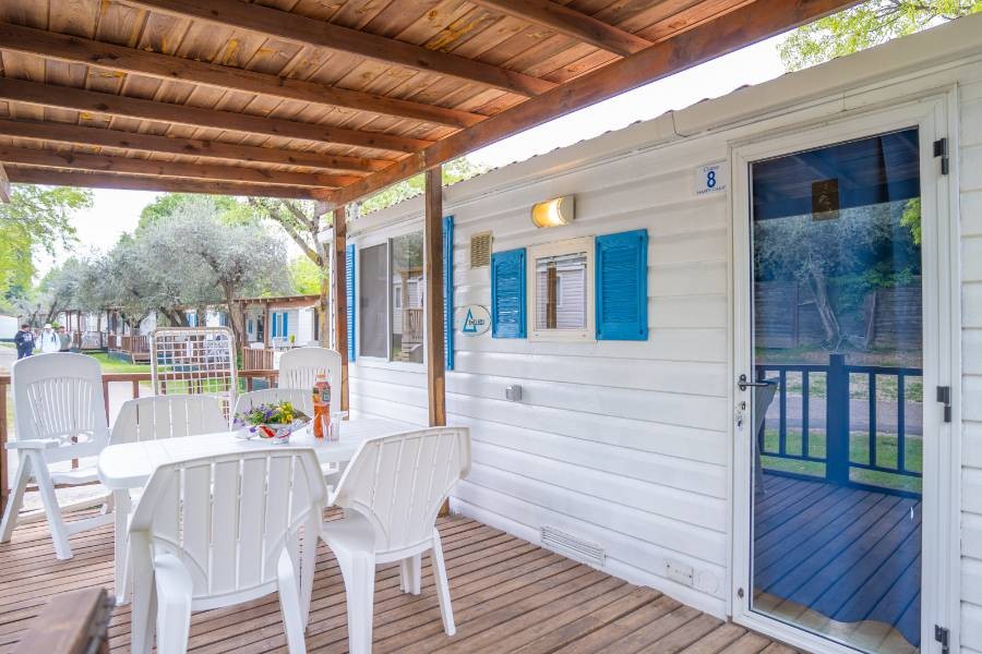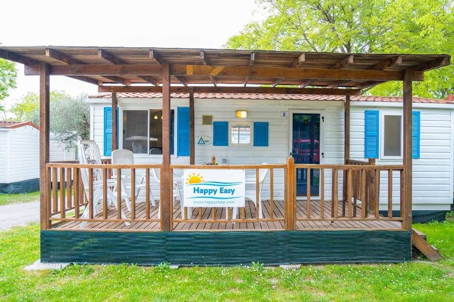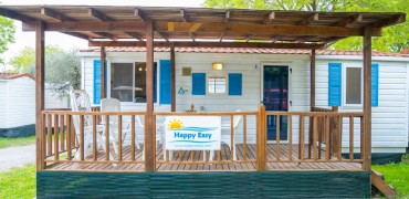 All'interno del Camping Bella Italia Sardinia è presente la confortevole Casa Mobile Happy Easy perfetta per ospitare fino 5 adulti e 1 bambino (di età max. di 12 anni); è composta da una stanza matrimoniale, una stanza con due letti singoli e un letto di dimensioni ridotte attaccato alla parete. Il soggiorno offre un ulteriore posto letto grazie alla seduta con cuscini, posizionata attorno al tavolo da pranzo. Completano l'interno una cucina accessoriata, un bagno con wc, doccia e lavandino. All’esterno è presente una terrazza in legno coperta a metà. Le Pulizie finali devono essere effettuate dal cliente, altrimenti verranno trattenuti dalla cauzione € 40,00 per Happy Easy. Per prenotazioni con gruppi di ragazzi (tra i 18 e i 25 anni) si prega di segnalarlo nella sezione "hai esigenze particolari" in fase di conferma online. Non sarà più possibile effettuare cambi nome sugli ospiti durante il soggiorno. Questo significa che gli ospiti registrati al momento del check-in non potranno essere sostituiti da altre persone nel corso della permanenza.