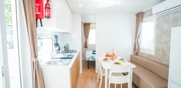 Il Camping Bella Italia dispone di varie tipologie di Mobile Home per poter conciliare il comfort alla libertà della vacanza in campeggio. Le Mobile Home fornite da Happy Camp possono soddisfare tutti i gusti: Casa Mobile Happy Superior, la più grande e confortevole, composta da una stanza matrimoniale con bagno privato composto da lavandino, doccia, xc e due stanze con due letti ciascuna con 2° bagno dotato di lavandino, doccia e wc, completano il soggiorno due casse Bluetooth e una presa usb, oltre ad un comodo divano letto, una cucina accessoriata. All'esterno è dotata di terrazza in legno completamente coperta. Dove il campeggio lo consente, è disponibile un barbecue a carbonella oppure una piccola piastra elettrica. La Casa Mobile Happy Premium Suite, che può ospitare fino a 7 adulti, composta da: una stanza matrimoniale e due stanze con due letti ciascuna. Completano l’interno un bagno con wc e un bagno con doccia, una cucina accessoriata, due casse Bluetooth e una presa usb, all’esterno è presente una terrazza semi coperta. La Casa Mobile Happy Premium composta da: una stanza matrimoniale e due stanze con due letti ciascuna. Completano la casa mobile una cucina accessoriata, un bagno con wc, doccia e lavandino e, in quasi tutte, è presente una terrazza rialzata e parzialmente coperta, ideale per rilassarsi e vivere momenti all’aperto in ogni condizione. La Casa Mobile Happy Relax può ospitare fino a 6 persone. È dotata di una camera da letto matrimoniale e una camera con un letto a castello e un terzo letto estraibile (quest'ultima presso il Camping Bella Italia è composta da n. 2 letti singoli di cui uno a scomparsa e un terzo letto sospeso a parete). Ulteriore posto letto in soggiorno, rappresentato dalla seduta con cuscini attorno al tavolo da pranzo. La cucina è accessoriata e dispone di un piano cottura, un lavandino, prese per la corrente e un frigorifero grande con congelatore. Nel bagno troverete doccia, wc e bidet (bidet non presente presso Camping Bella Italia). All'esterno è possibile godere di comodi mobili da giardino: tavolo con sedie, due sdraio o sedie reclinabili e grill elettrico. Per le tipologie Happy Superior e Premium Suite è disponibile una poltrona pensile e due sdraio. Nelle categorie Happy Easy e Relax sono disponibili sdraio o sedie reclinabili. Cauzione € 100,00 in contanti per appartamento da pagare in loco restituibile a fine soggiorno. Le Pulizie finali devono essere effettuate dal cliente, sennò verranno trattenuti dalla cauzione € 40,00 per Happy Relax; € 50,00 per Happy Premium, Plus, Premium Suite e Superior. Per prenotazioni con gruppi di ragazzi (tra i 18 e i 25 anni o minorenni) si prega di segnalarlo nella sezione "hai esigenze particolari" in fase di conferma online. Le Case Mobili presentano barriere architettoniche.