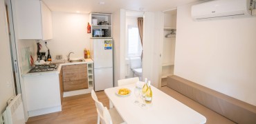 All'interno del Camping La Masseria è presente la graziosa Casa Mobile Happy Comfort dotata di una stanza matrimoniale, una stanza con due letti singoli. E' dotata di soggiorno, una cucina accessoriata eun bagno con wc, doccia e lavandino. All’esterno è presente una terrazza in legno semi coperta. In soggiorno è disponibile un ulteriore posto letto rappresentato dalla seduta con cuscini intorno al tavolo. La Casa Mobile Happy Premium trilocale con cucina accessoriata, un bagno con wc, doccia e lavandino ed è presente una terrazza esterna semi coperta. La Casa Mobile Happy Premium Suite trilocale con un bagno con wc e un bagno con doccia, una cucina accessoriata, due casse Bluetooth e una presa usb, all’esterno è presente una terrazza semi coperta.La Casa mobile Happy Superior, la prima degli alloggi Happy Camp dotata di 2 bagni completi, è composta da: un moderno soggiorno con una luminosa porta vetri a due ante (in soggiorno si trova anche una cassa Bluethooth e una presa usb); un bagno con lavandino, specchio, doccia, wc e asciugacapelli; una cucina attrezzata con frigo munito di freezer, piano cottura a quattro fuochi e lavandino; una stanza matrimoniale, con bagno privato interno completo di lavandino, specchio, doccia e wc; altre due stanze da letto ciascuna con due letti singoli.Tutte le camere sono dotate di appendiabiti. Le zanzariere oscuranti sono presenti sia in zona giorno che in zona notte. All’esterno è presente una terrazza in legno completamente coperta.