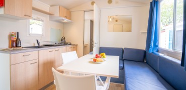 All'interno del Camping Village Paestum è presente la confortevole Casa Mobile Happy Easy perfetta per ospitare fino 5 adulti e 1 bambino (di età max. di 12 anni); è composta da una stanza matrimoniale, una stanza con due letti singoli e un letto di dimensioni ridotte attaccato alla parete. Il soggiorno offre un ulteriore posto letto grazie alla seduta con cuscini, posizionata attorno al tavolo da pranzo. Completano l'interno una cucina accessoriata, un bagno con wc, doccia e lavandino. All’esterno è presente una terrazza in legno coperta a metà. Le Pulizie finali devono essere effettuate dal cliente, altrimenti verranno trattenuti dalla cauzione € 40,00 per Happy Easy. Per prenotazioni con gruppi di ragazzi (tra i 18 e i 25 anni) si prega di segnalarlo nella sezione "hai esigenze particolari" in fase di conferma online.