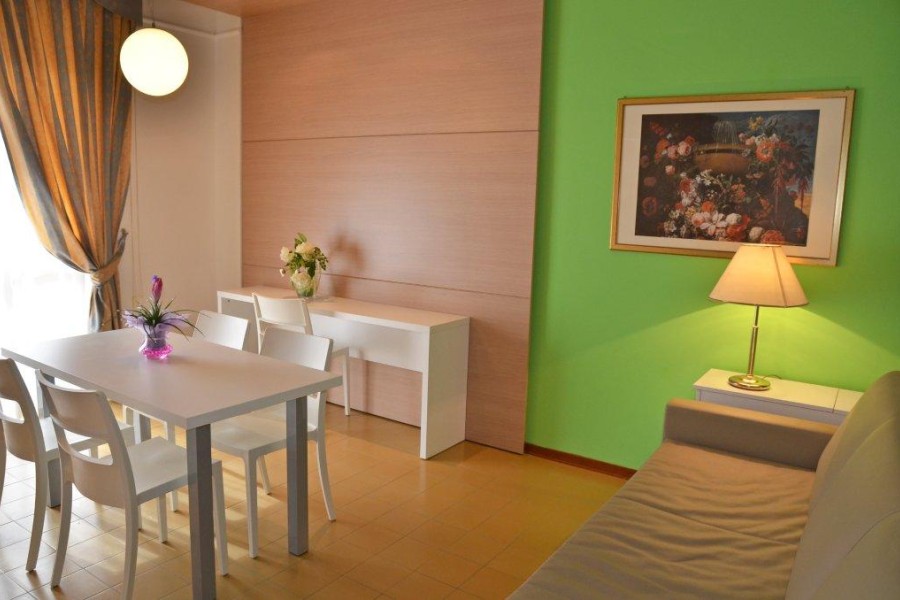 Il Grand Eurhotel è composto da 130 appartamenti/camere modernamente arredate ed interamente rinnovate. Ogni alloggio è dotato di servizi privati con doccia, aria condizionata autonoma, telefono, Tv, phon, frigo, cassaforte, angolo cottura attrezzato con 2 piastre elettriche e grande terrazzo. Le ampie camere matrimoniali ristrutturate, separate dalla zona salotto (soggiorno) possono ospitare il 3°/4°/5° letto aggiunto (letti bassi no castello).