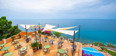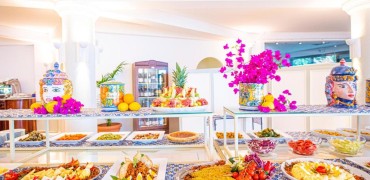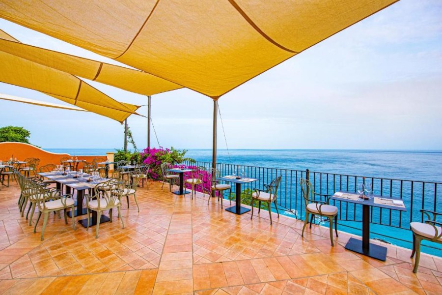 Al ristorante vista mare Solemoro dell’Hotel Baia Taormina si potrà vivere un viaggio sensoriale tra i colori, i profumi e i sapori di una cucina che, attraverso il sapiente uso di materie prime di altissima qualità, spazia dalla tradizione siciliana alla cucina italiana e internazionale, per sorprendere ogni volta gli ospiti con gusti e piatti indimenticabili. La prima colazione e la cena sono servite a buffet (con acqua in caraffa inclusa ai pasti) nella sala climatizzata e sulla terrazza affacciata sulla baia di Taormina. Ogni sera sono previsti angoli gastronomici a tema: il lunedì angolo con “focacce tipiche”, il martedì angolo “tutto pesce”, il mercoledì angolo dolce, il giovedì cena al tramonto con live music sulla “Terrazza sul mare”, il venerdì cena tipica siciliana, il sabato pomeriggio “happy hour” vicino alle piscine con stuzzichini e cocktail (a pagamento) con DJ set e la sera cena elegante gourmet con music bar, la domenica cena con angolo “cannoli con ricotta”. Per i piccoli ospiti sono disponibili presso la sala ristorante dei seggioloni, e su richiesta il personale di sala fornisce prodotti freschi (brodo vegetale senza sale, passato di verdure, crema di riso, salsa di pomodoro senza sale, latte intero o parzialmente scremato, formaggini, formaggio grattugiato, yogurt e due tipi di pastina). Negli orari di chiusura della sala ristorante è possibile rivolgersi al bar. Si mettono a disposizione alimenti base per celiaci (pane, pasta, biscotti, brioche). Infine, per pranzo è disponibile una Carta Snack (servizio a pagamento) con servizio presso il bar piscina con vista sul mare.