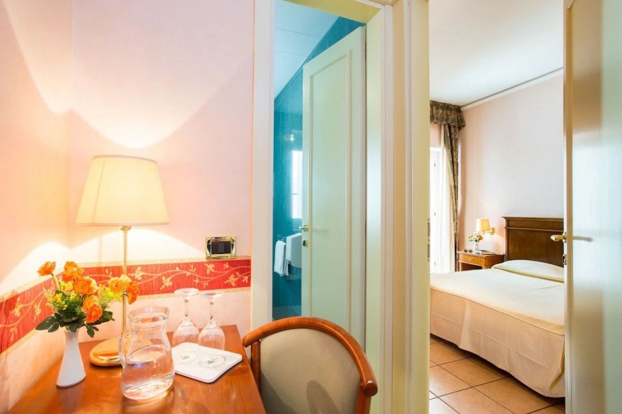 L'Hotel Santa Lucia dispone di ampie camere confortevoli tutte dotate di aria condizionata, telefono, televisione, servizi privati, connessione internet Wi-Fi, minibar, asciugacapelli, cassaforte. Disponibili in formula doppia, tripla e quadrupla (le camere multiple dispongono di letti piani).