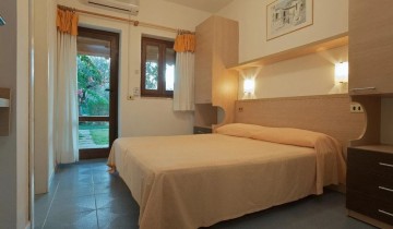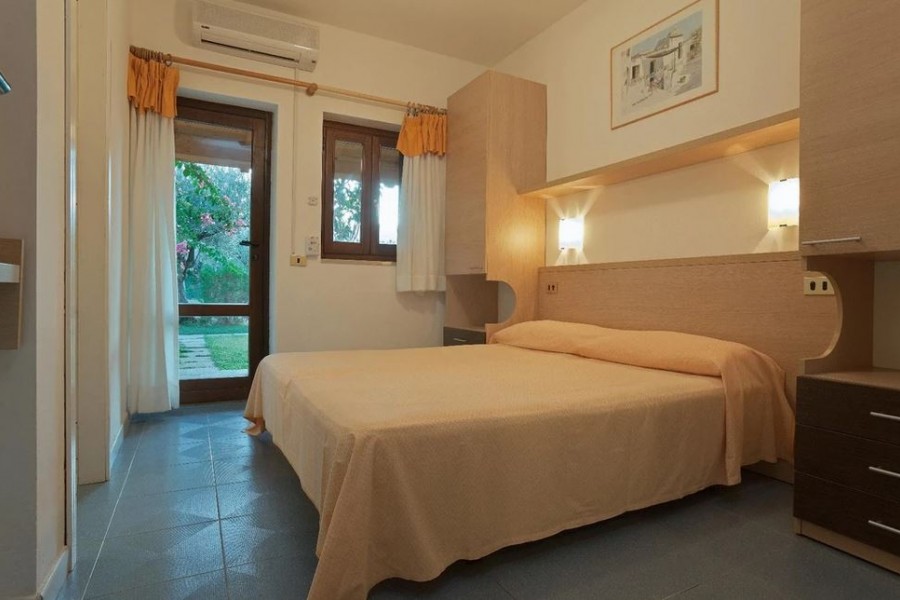 Le 170 camere del Nausicaa Village, ubicate in costruzioni a schiera a 2 piani circondate dal verde o nel corpo centrale, sono tutte dotate di aria condizionata, ventilatore a pale, frigo, servizi con doccia e asciugacapelli, Tv LCD, cassetta di sicurezza, giardino comune o balcone/terrazzo; le camere del corpo centrale e le doppie al primo piano sono fornite di telefono. Disponibili seguenti tipologie di camere: Standard Nausicaa Village per 2/3/4 persone (triple e quadruple non a piano terra; quadruple con letto a castello); Standard con Terrazza Nausicaa Village per 3/4 persone, camere al 1° piano con ampia terrazza di 16 mq con veranda in legno ed attrezzata con tavolo e sedie; le quadruple di questa tipologia sono composte da cameretta matrimoniale e camera con letto a castello; Family Nausicaa Village a 2 vani per 4 persone (possibilità di 5° letto aggiunto), tutte a piano terra con giardino comune.