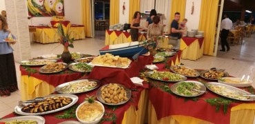 Il ristorante del Nausicaa Village in veranda aperta con prima colazione (dalle 07.30 alle 09.30), pranzo (dalle 12.30 alle 14.00) e cena (dalle 19.30 alle 21.00) con buffet servito e menu a scelta tra 2 primi, 2 secondi con contorni vari, frutta e dessert; al Nausicaa Village vengono organizzate serate con prodotti tipici (acqua naturale e gassata, vino in caraffa inclusi). Sistemazione in tavoli assegnati per ogni camera. Celiachia al Nausicaa Village: per quanto riguarda i cibi serviti al tavolo e/o a buffet non è garantita la totale assenza di contaminazione crociata nella fase di preparazione e/o di somministrazione delle pietanze. Si fa presente però che al ristorante sarà possibile trovare una grande varietà di alimenti fra cui anche pietanze che solitamente non contengono glutine. Biberoneria del Nausicaa Village: 24 ore al giorno per bambini 0/3 anni, dispone di cucina attrezzata con scaldabiberon, microonde, frullatore, frigorifero, piastre elettriche, utensili. Nei periodi di bassa affluenza disponibile piccola area preparazione pasti presso il ristorante. Assistenza con personale ai pasti alle ore 12.00-13.15 e 19.00-20.15. A pranzo e cena, vengono forniti alimenti base quali ad esempio latte, pastina, brodo vegetale, passati di verdure. Disponibili inoltre fasciatoio, vaschette per bagnetto e passeggini (con cauzione).